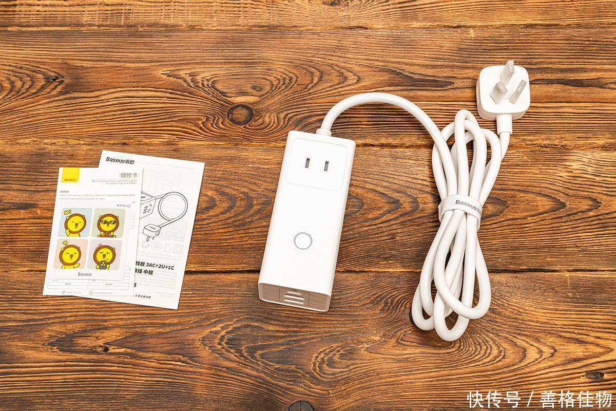 按照惯例先来看一下全家福,很简单,除了插线板,额外的东西就是说明书、保修卡,还有一张趣味贴纸。